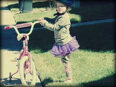 Her little brother is not super happy to be left on the sidelines with the trike.